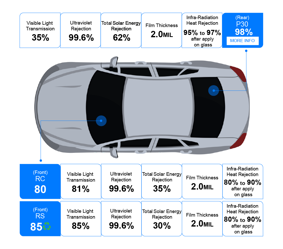 Up to 99.6% shielding of harmful ultraviolet rays that helps to protect vehicle interior